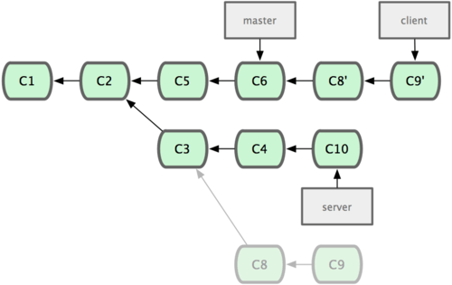 $ git rebase --onto master server client