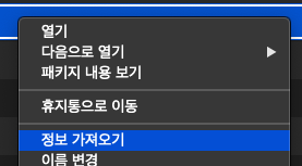 아무 프로젝트의 ?.xcodeproj 의 위에 가서 마우스 오른쪽을 합니다.