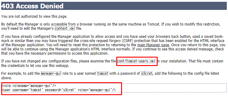 username은 tomcat / password는 password로 하였습니다. 적당히 적절히 변경하세요.