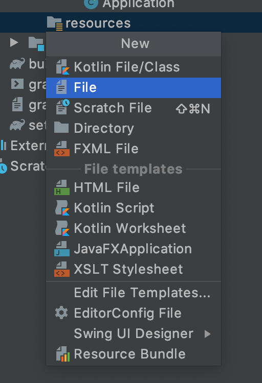 그곳에 파일을 만들어 줍니다. 이름은 Application 입니다.