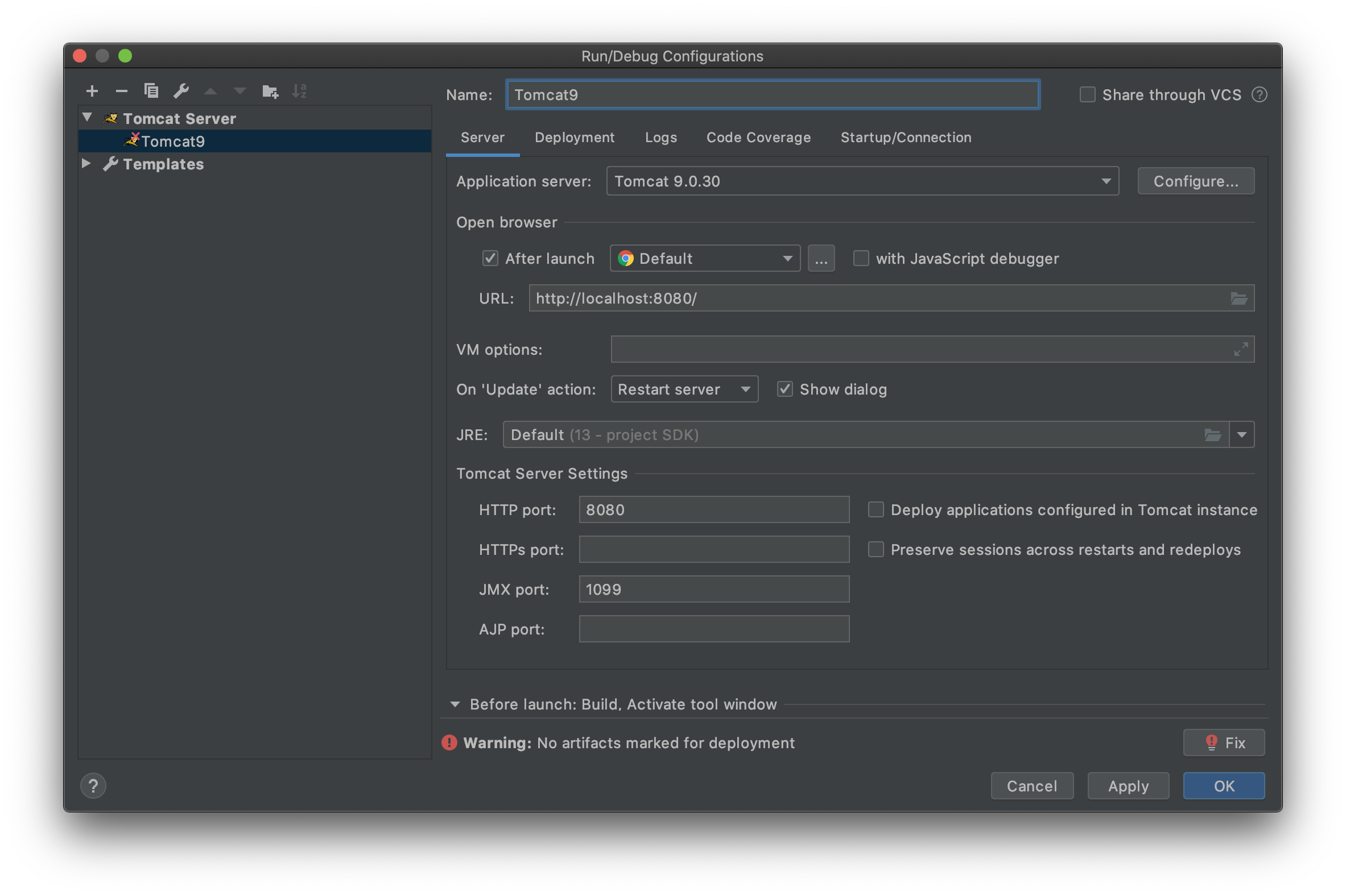 Deployment tap에서 +를 눌러서 추가하여 줍니다.