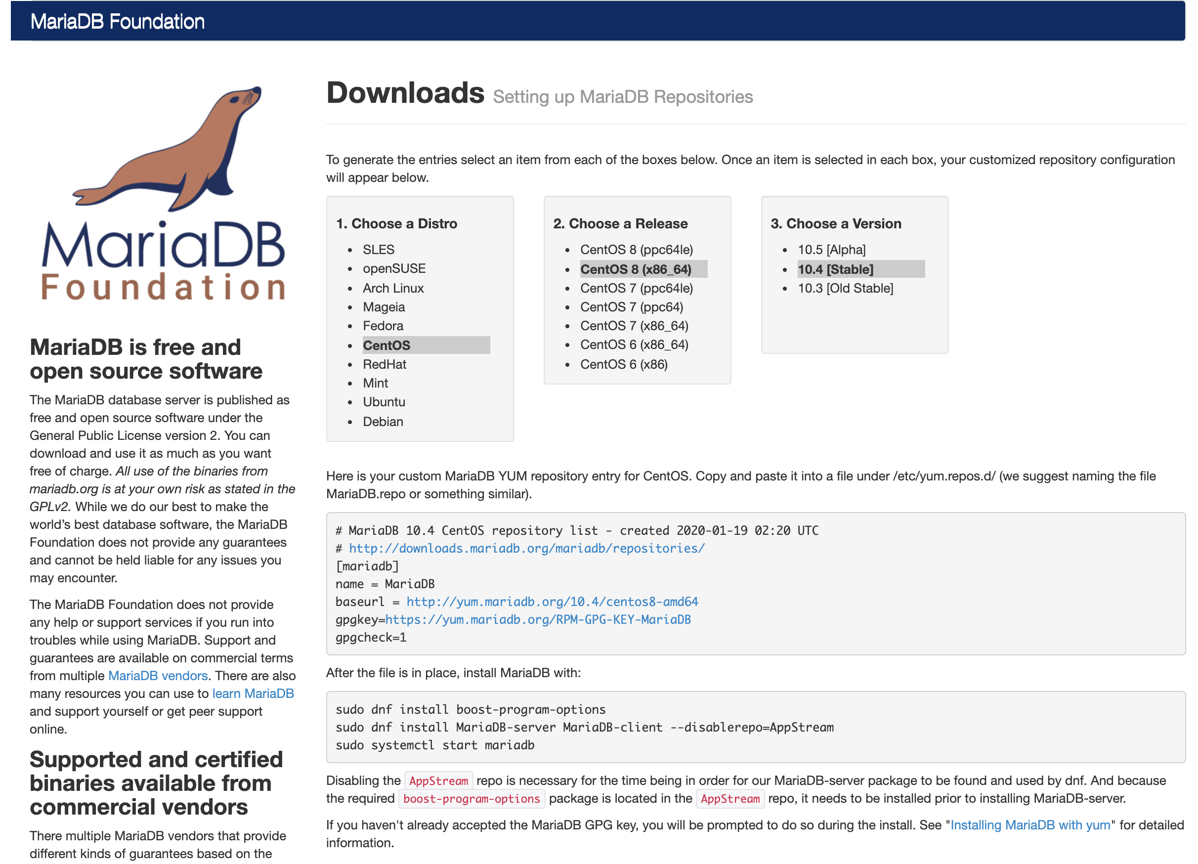 # MariaDB 10.4 CentOS repository list - created 2020-01-19 02:20 UTC
