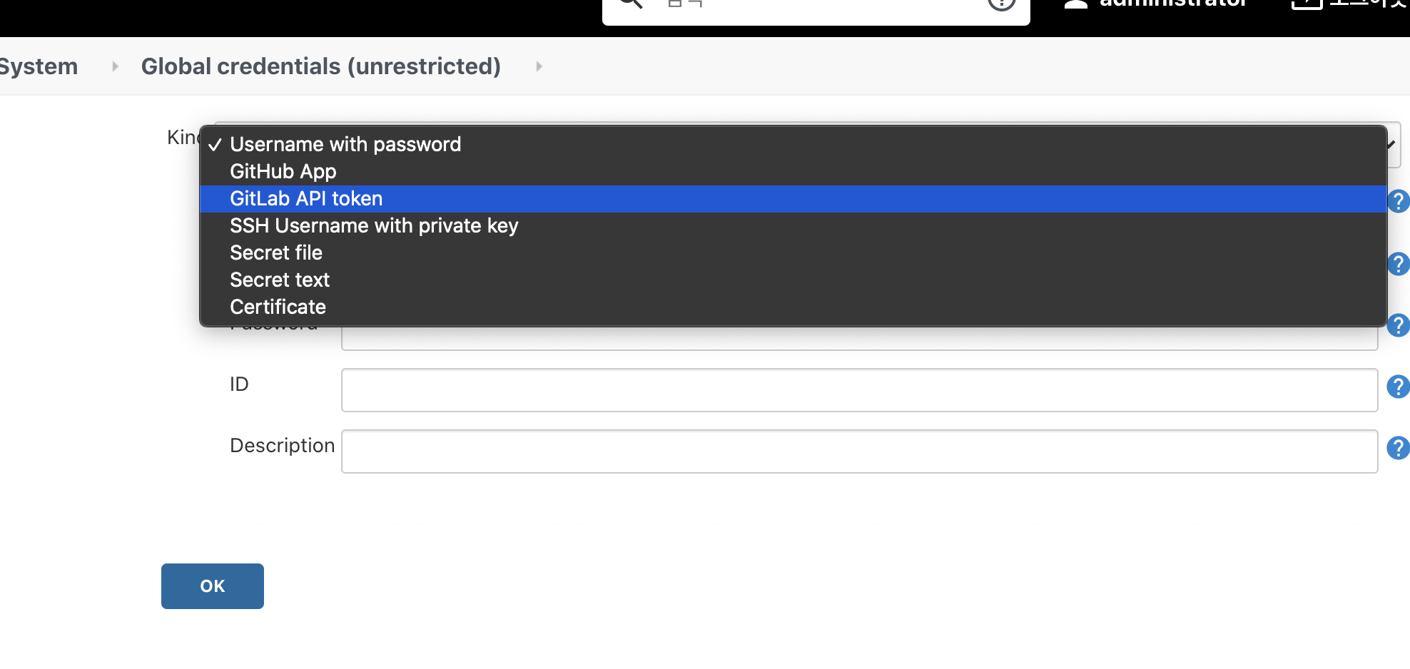 jenkins Credentials를 설정합시다.