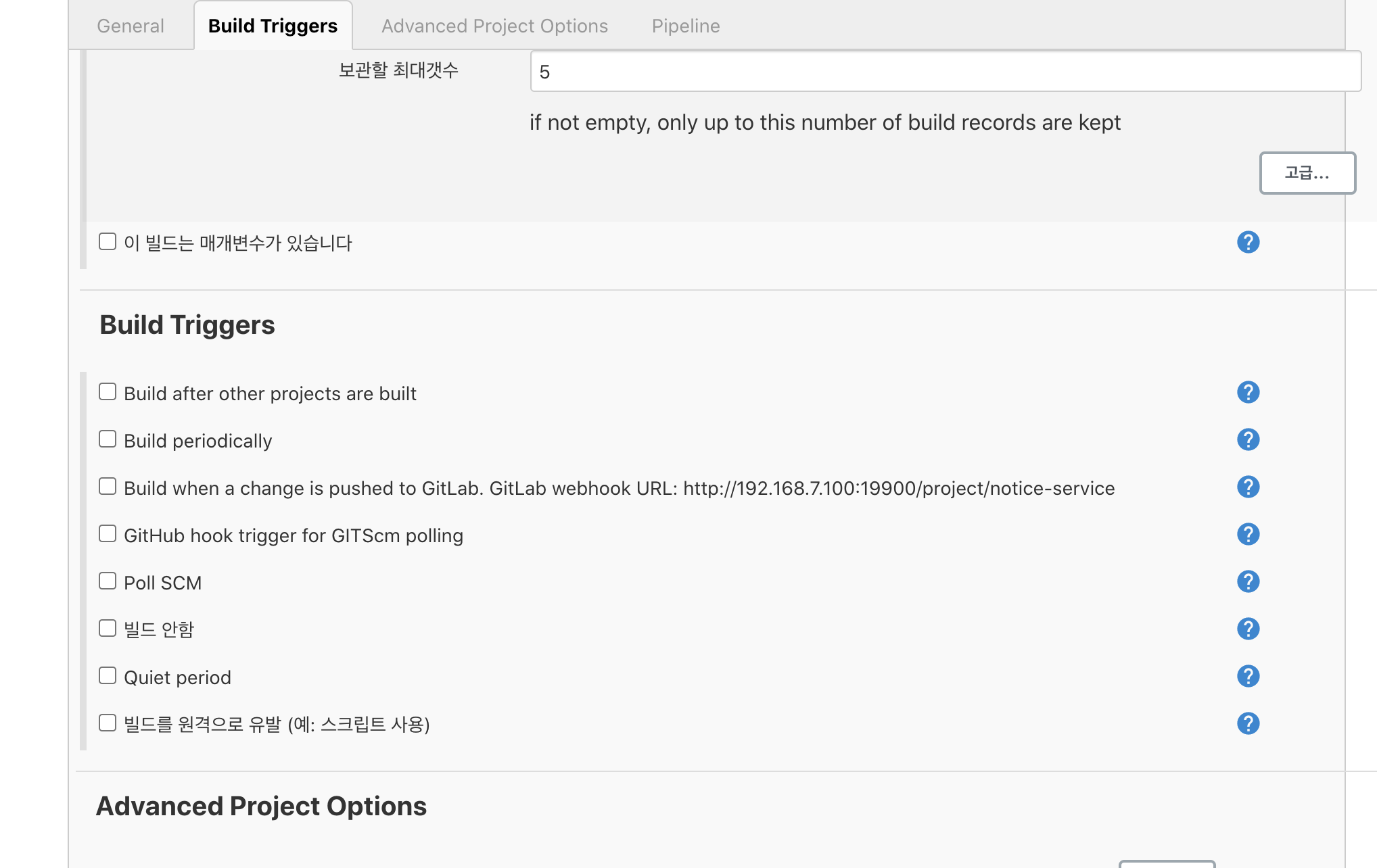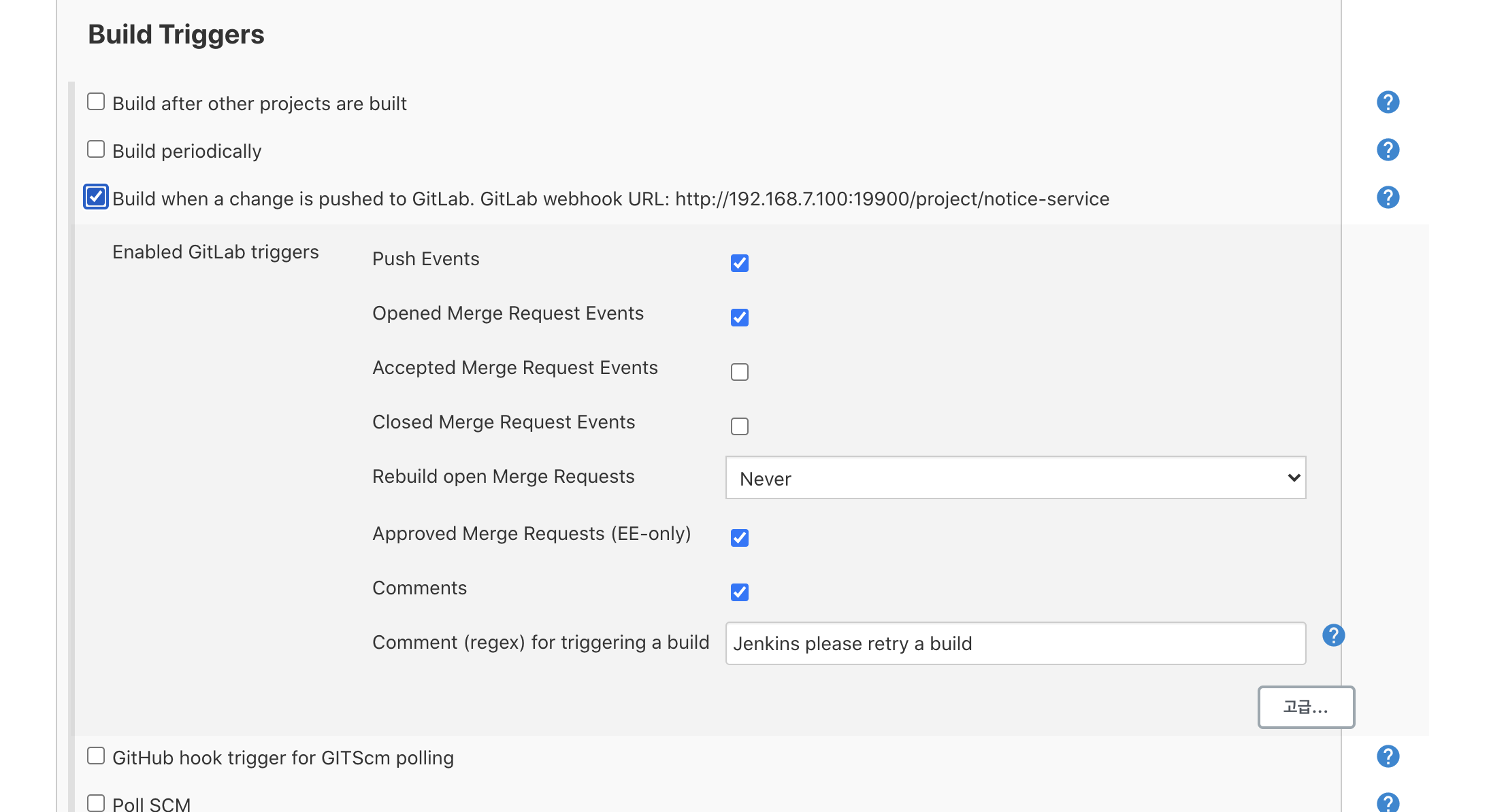 Build when a change is pushed to Gitlab.을 클릭 합시다.