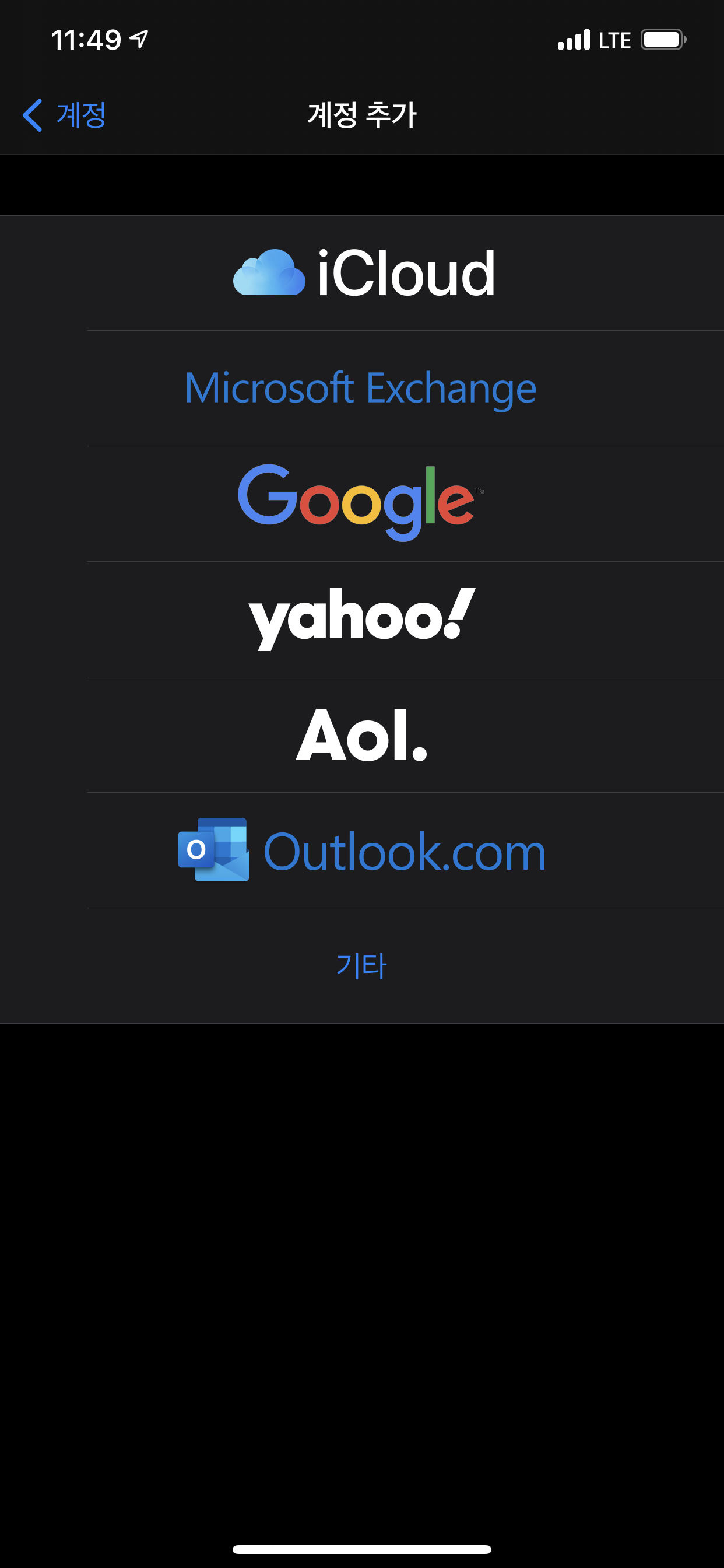 아이폰 설정에서 계정을 찾아서 추가하여 줍니다.