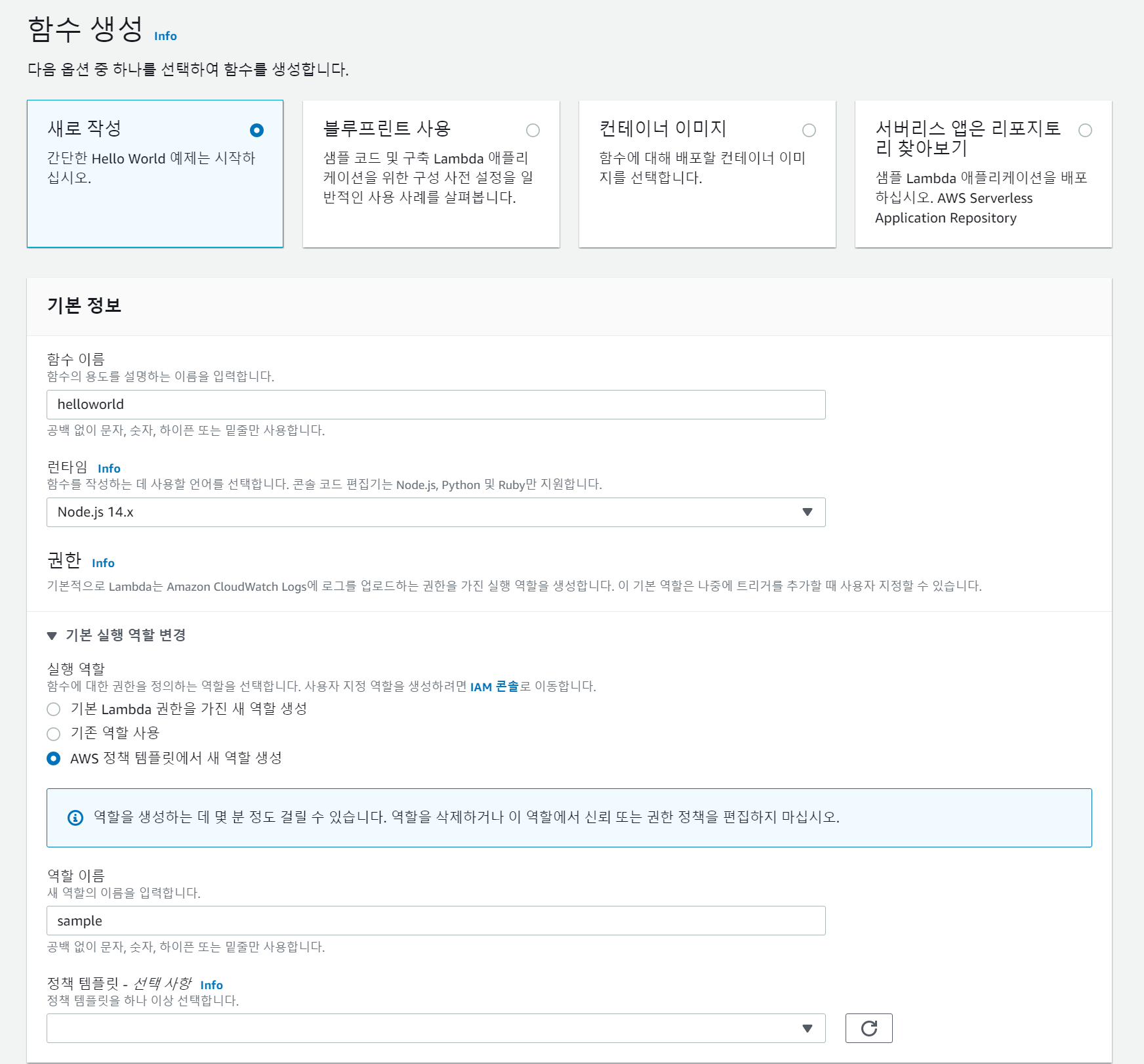 다음에 접속해서 Lambda를 새로 생성합니다.